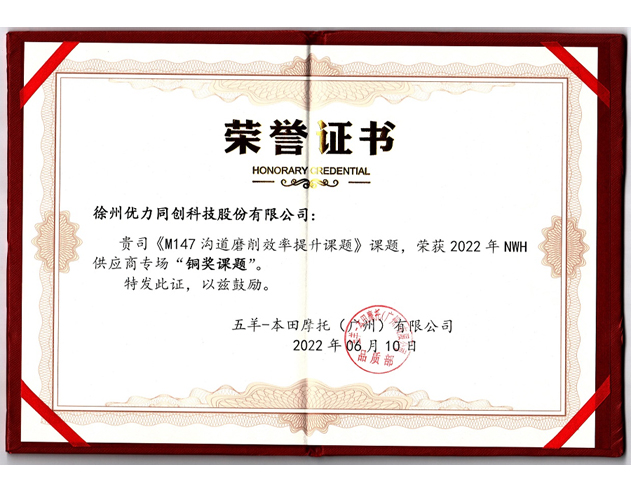 我司参加2022年五羊本田供应商课题发布会,我司《M147沟道磨削效率提升》课题报告,荣获2022年NWH供应商专场“铜奖课题”。